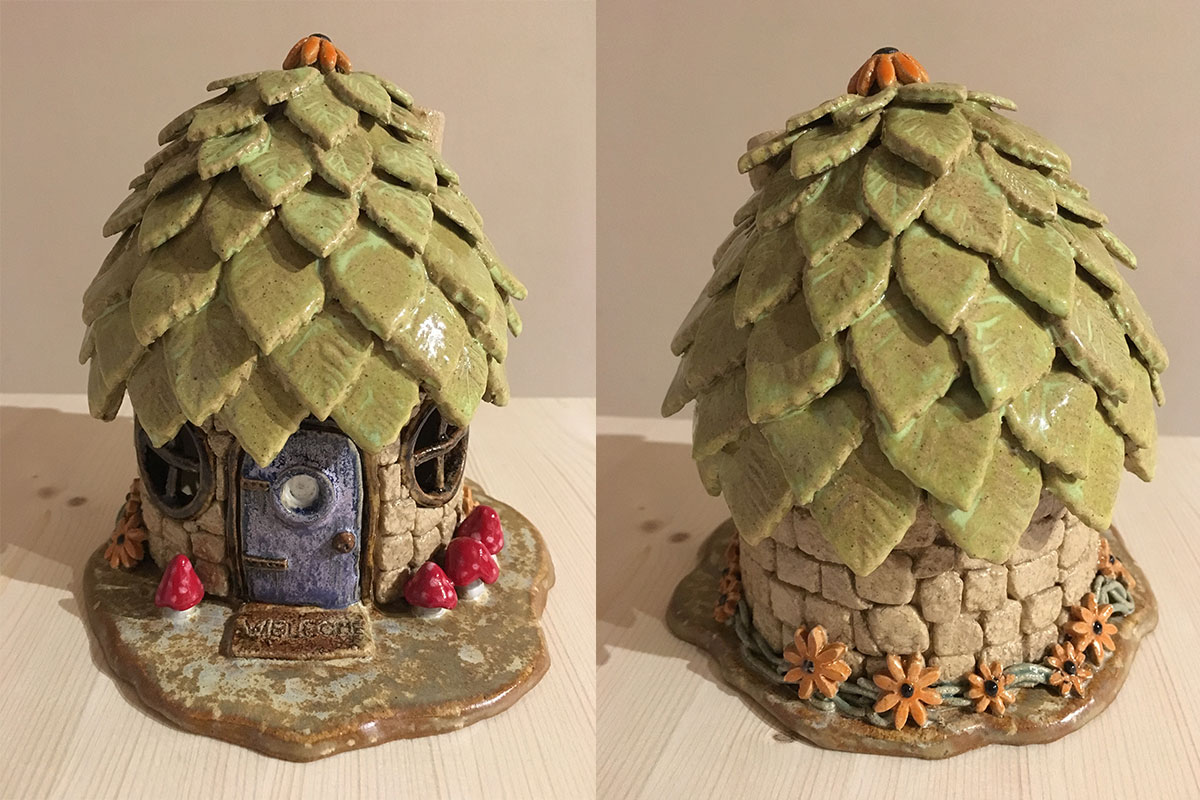 Look what I found at the bottom of my garden this morning! Well it was really at the bottom of our electric kiln along with a few other items. A fairy house handmade by Shirley. Lovely details and just 17cm high.